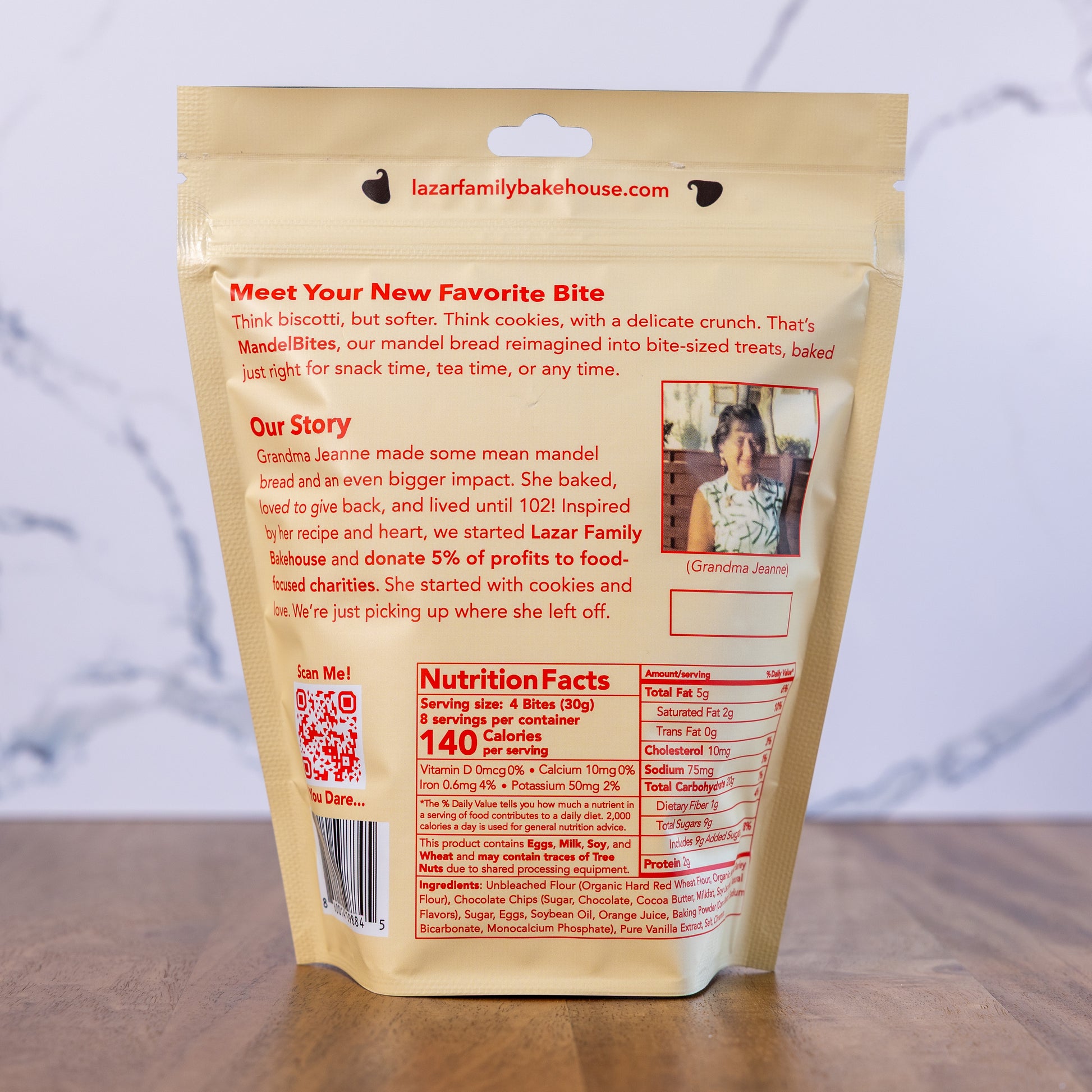 Each 8 oz pouch is handmade and hand-sliced by the Grandma’s Goodies team in South Denver. We use real ingredients — no preservatives, no shortcuts. Just the same recipe Grandma Jeanne perfected over four generations. And because giving back matters to us, 5% of our profits go to food charities with every purchase.